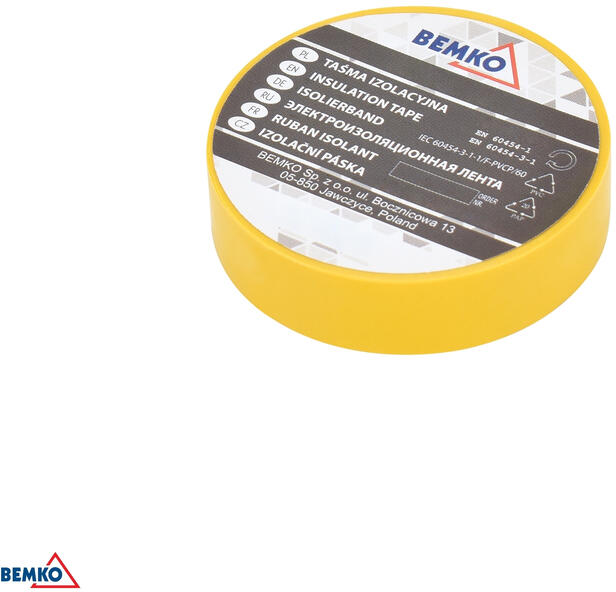 Szigetelő szalag, 20m, 19mm, sárga BEM, E30-PVC1920YE, Bemko Szigetelő szalag, 20m, 19mm, sárga BEM